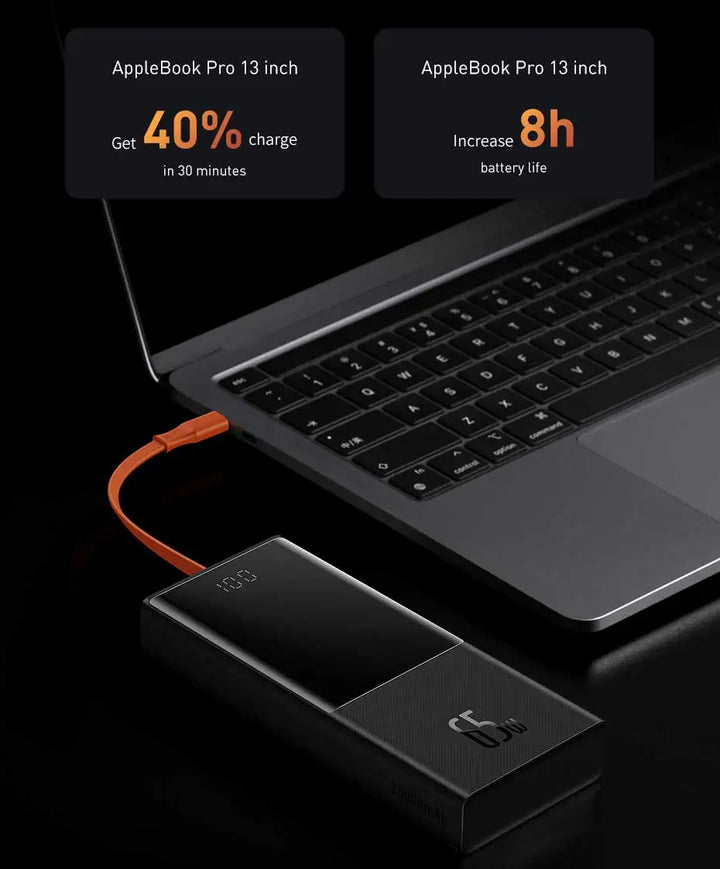 - Charge Rapide pour Ordinateurs Portables : Avec une sortie PD de 65W, cette power bank est capable de charger rapidement les ordinateurs portables grand public du marché, offrant une solution de recharge fiable même pour les plus exigeants.