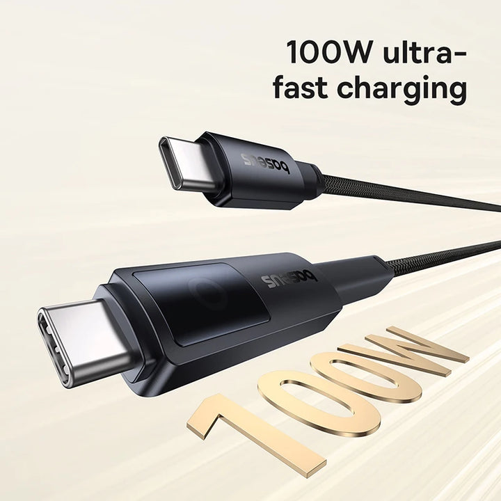 Câble USB-C 100W Baseus avec support pour téléphone, compatible avec iPhone 16/15 Pro Max, MacBook, iPad, Xiaomi, Type-C vers Type-C