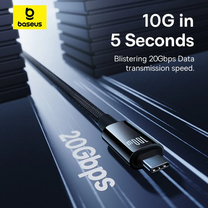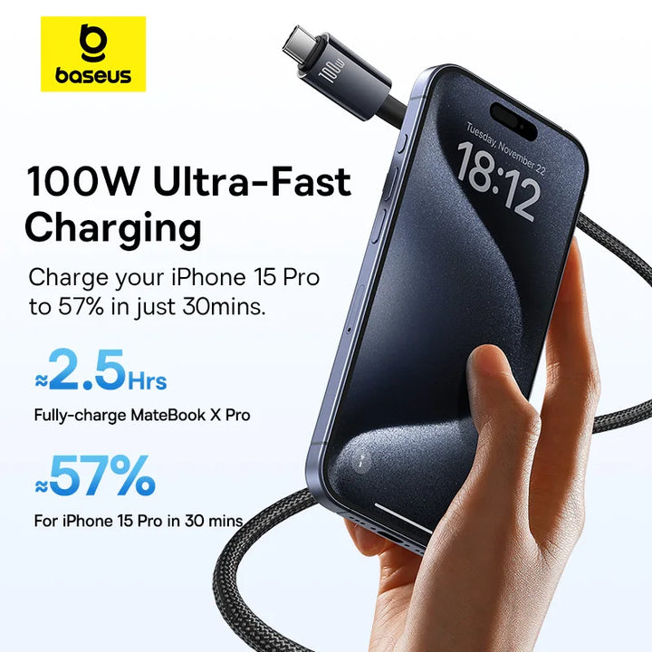 Câble de données USB-C Baseus 20Gbps pour MacBook, câble de charge rapide 100W pour iPhone 16/15 Plus/Pro Max, Type-C vers Type-C