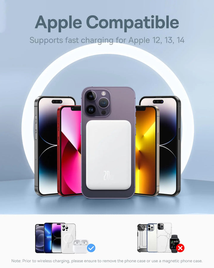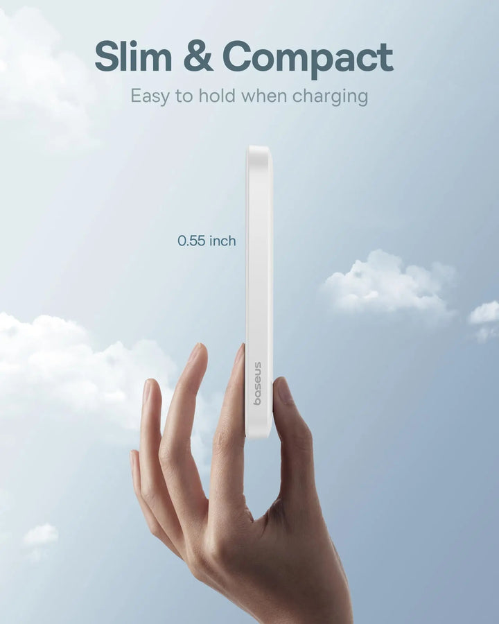 Chargeur sans fil magnétique Baseus 20W, batterie externe 5000mAh, boîtier en silicone antidérapant de 14,2 mm, charge rapide pour iPhone 8 à 16.