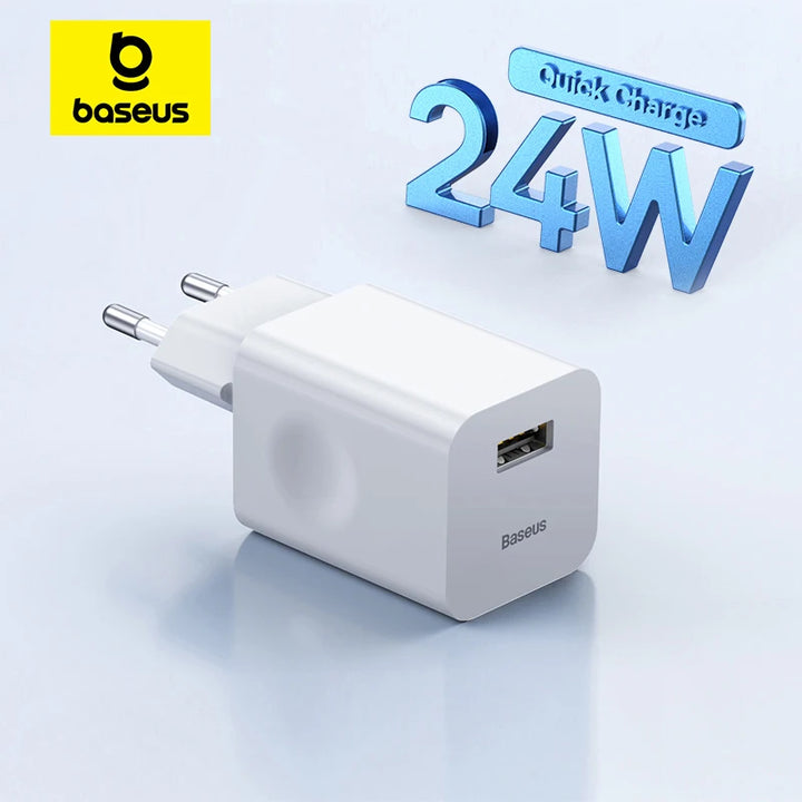 Chargeur USB Baseus 24W Charge Rapide pour iPhone 15 Charge Rapide 3.0 Chargeur de Téléphone pour Samsung Huawei Xiaomi