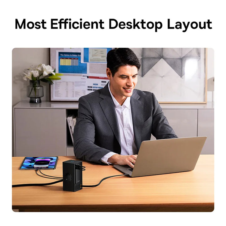 Baseus Multiprise 65W avec prise US, 3 prises CA et ports USB-C, multiprise GaN avec contrôle tactile intelligent, station de bureau et chargeur rapide pour iPhone et ordinateur portable.