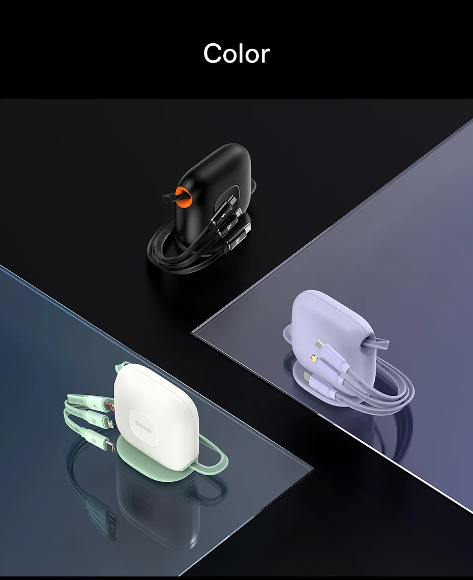 Le Baseus Câble de Charge Rapide Rétractable 3 en 1 est l'accessoire ultime pour simplifier votre vie numérique. Doté de trois connecteurs en un seul câble polyvalent, vous permet de charger facilement une variété d'appareils, qu'il s'agisse de votre iPhone, tablette et droïde ou de votre appareil USB-C.