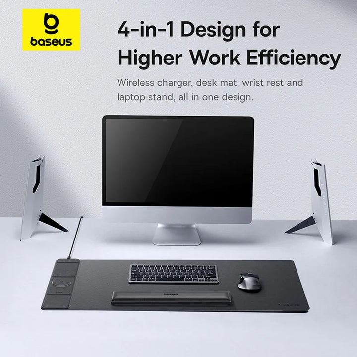 Baseus Smart Desk Mat with Wireless Charger for iPhone 16 Gaming Office Wrist Rest Laptop Phone Stand Holder Keyboard Mouse Pad