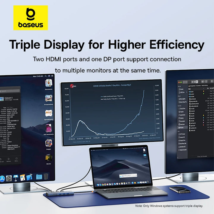 Baseus USB 3.0 Hub to HDMI DP 4K 60Hz Docking Station 11-In-1 Type C Hub RJ45 USB-A PD 100W SD TF Adapter for MacBook PC USB Hub