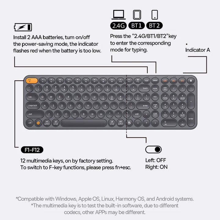 Baseus Wireless Keyboard 2.4G Bluetooth 5.0 with Numeric Keycap for iPad MacBook Tablet Laptop PC Office Game Ergonomic Keyboard