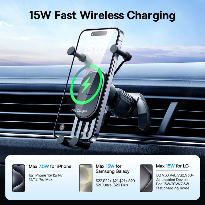 [Limited Stock Clearance] Baseus Wireless Charger Car Phone Holder for Xiaomi Samsung Huawei 15W Car Phone Stand Mount Holder
